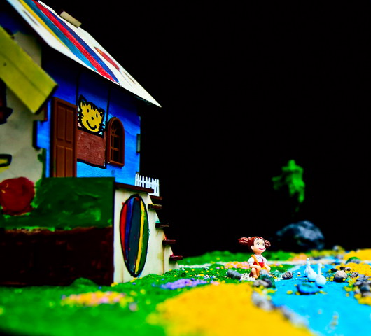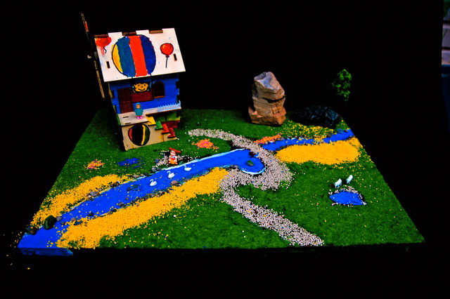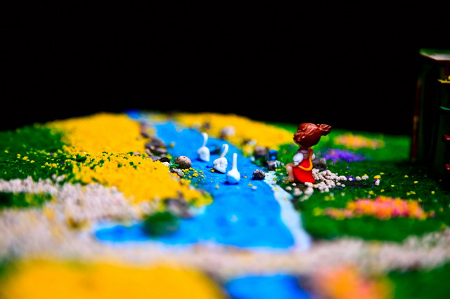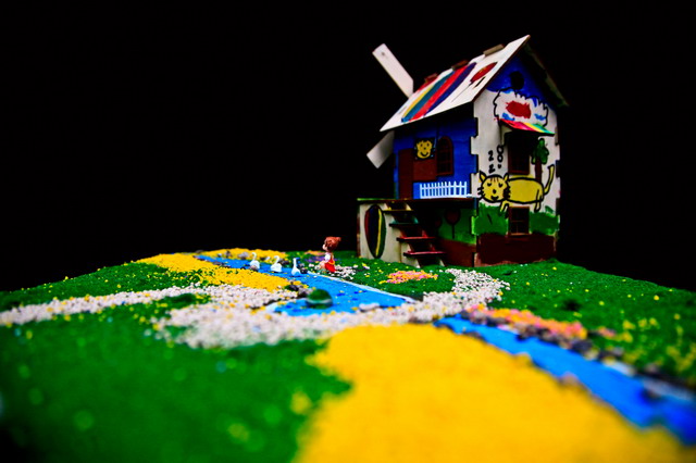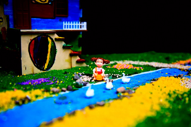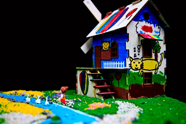 注解:《尼尔斯骑鹅旅行记》是世界文学史上第一部,也是唯一一部获得诺贝尔文学奖的童话作品。作者是瑞典女作家塞尔玛·拉格洛芙。故事讲一个不爱学习、喜欢恶作剧的顽皮孩子尼尔斯,因为一次捉弄小妖精而被小妖精用魔法变成了一个小人。他骑在他家的大白鹅背上,跟着一群大雁出发作长途旅行。通过这次奇异的旅行,尼尔斯增长了很多见识,结识了许多朋友,也碰到过好几个凶恶阴险的敌人。他在种种困难和危险中受到了锻炼,最后尼尔斯回到了家中,恢复原形变成了一个好孩子。 作品制作的说明:丁丁同学的“小猫钓鱼”木屋模型,采用杭州中天的“缤纷童年”涂装木屋赛模型。“小猫钓鱼”原本是描写小猫钓鱼的故事,该作品在2014年全国建筑模型教育竞赛活动中取得过优异成绩。今天,丁丁同学的作品——“小猫钓鱼”木屋模型,被琛琛同学制作成了一个非常漂亮的沙盘:缤纷童年。请您欣赏。