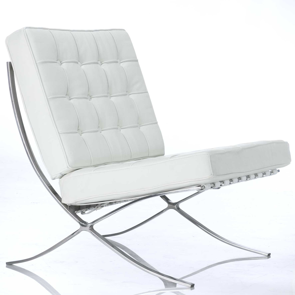 巴塞罗那椅(密斯·凡·德罗)现代家具设计的经典之作,由呈弧线交叉状的不锈钢构架支撑真皮皮垫,优美而且功能化。